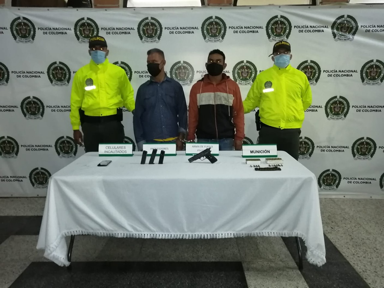 Durante el operativo realizado por la Policía, se logró la incautación de una pistola calibre 9 mm, 3 cargadores sin munición, 81 cartuchos sin percutir calibre 9 mm, 21 cartuchos sin percutir calibre 38SP, un celular marca Samsung y un celular marca Motorola.