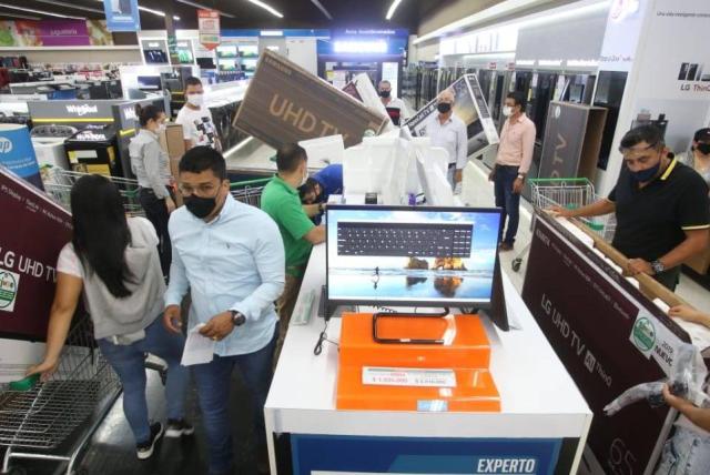 La lluvia en varias ciudades del país no fue impedimento para que las personas salieran a realizar sus compras, y desde las primeras horas de la mañana en varios almacenes se evidenciaban largas filas de personas que buscaban comprar sus productos. Los lugares más visitados fueron los locales de electrodomésticos.
